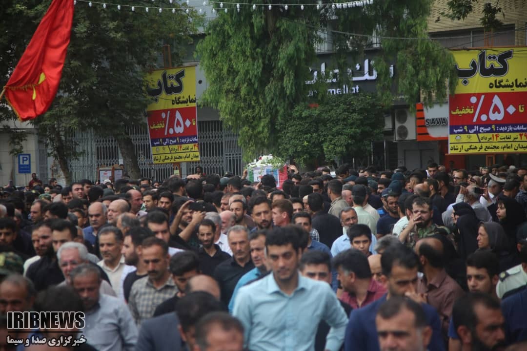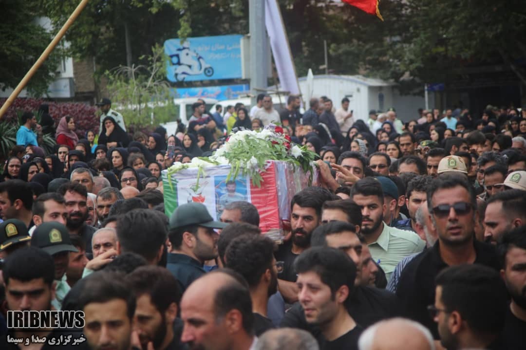 پیکر شهید استواریکم امیرمختار جعفری، مامور جان برکف نیروی انتظامی که در درگیری با شرور مسلح شهر فنوج استان سیستان و بلوچستان به درجه رفیع شهادت نائل شد امروز با حضور قشرهای مختلف مردم و مسئولان در ساری تشییع شد.