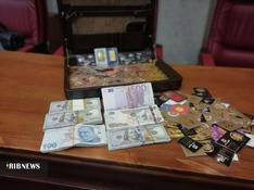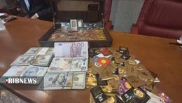 کیف حاوی سکه و ارزهای کشف شده از متهمان پرونده