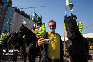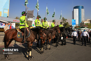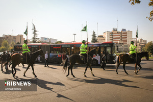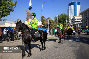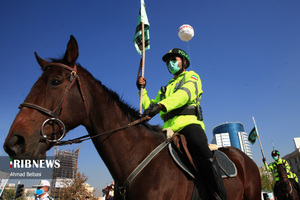 صبح امروز به مناسبت هفته ناجا ، یگان اسب سواران نیروی انتظامی رژه ای نمایشی در مسیر میدان ونک تا پارک ملت برگزار کردند.