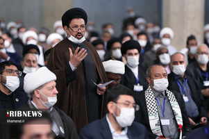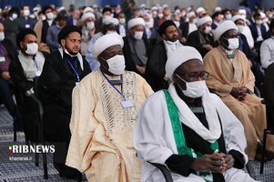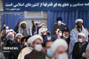 شرکتکنندگان در هفتمین اجلاس مجمع جهانی اهل بیت علیهمالسلام صبح امروز شنبه دوازدهم شهریور ماه با حضور در حسینیه امام خمینی (ره) با حضرت آیتالله خامنهای رهبر انقلاب اسلامی دیدار کردند