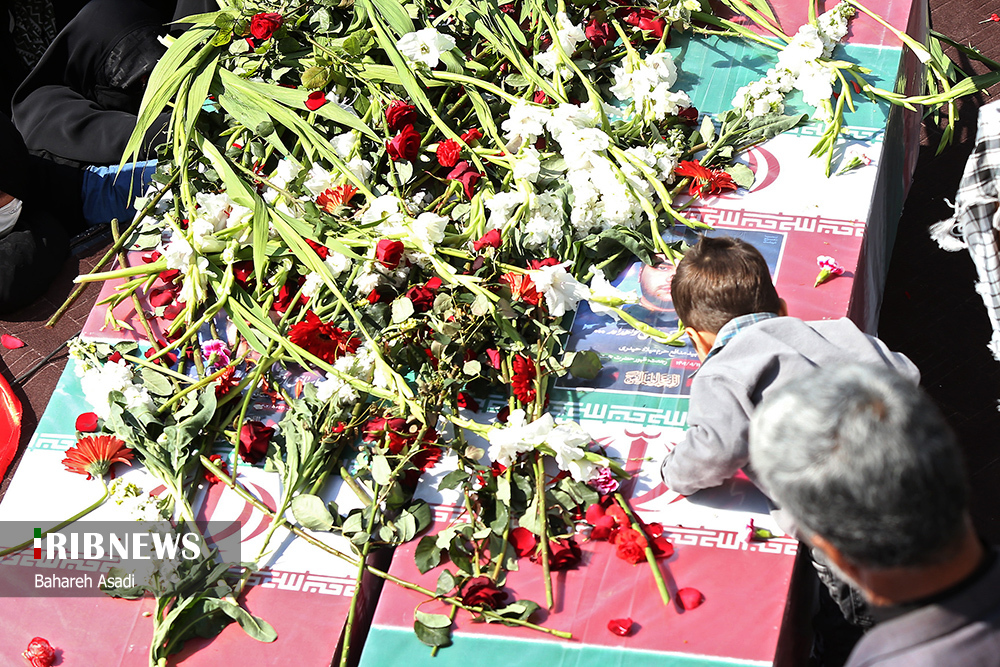 مراسم تشییع پیکر شهیدان مدافع حرم میلاد حیدری و مقداد مهقانی جعفر آبادی، سهشنبه ۱۵ فروردین ۱۴۰۲ در میدان آیینی امام حسین (ع) تهران با حضور اقشار مختلف مردم برگزار شد.