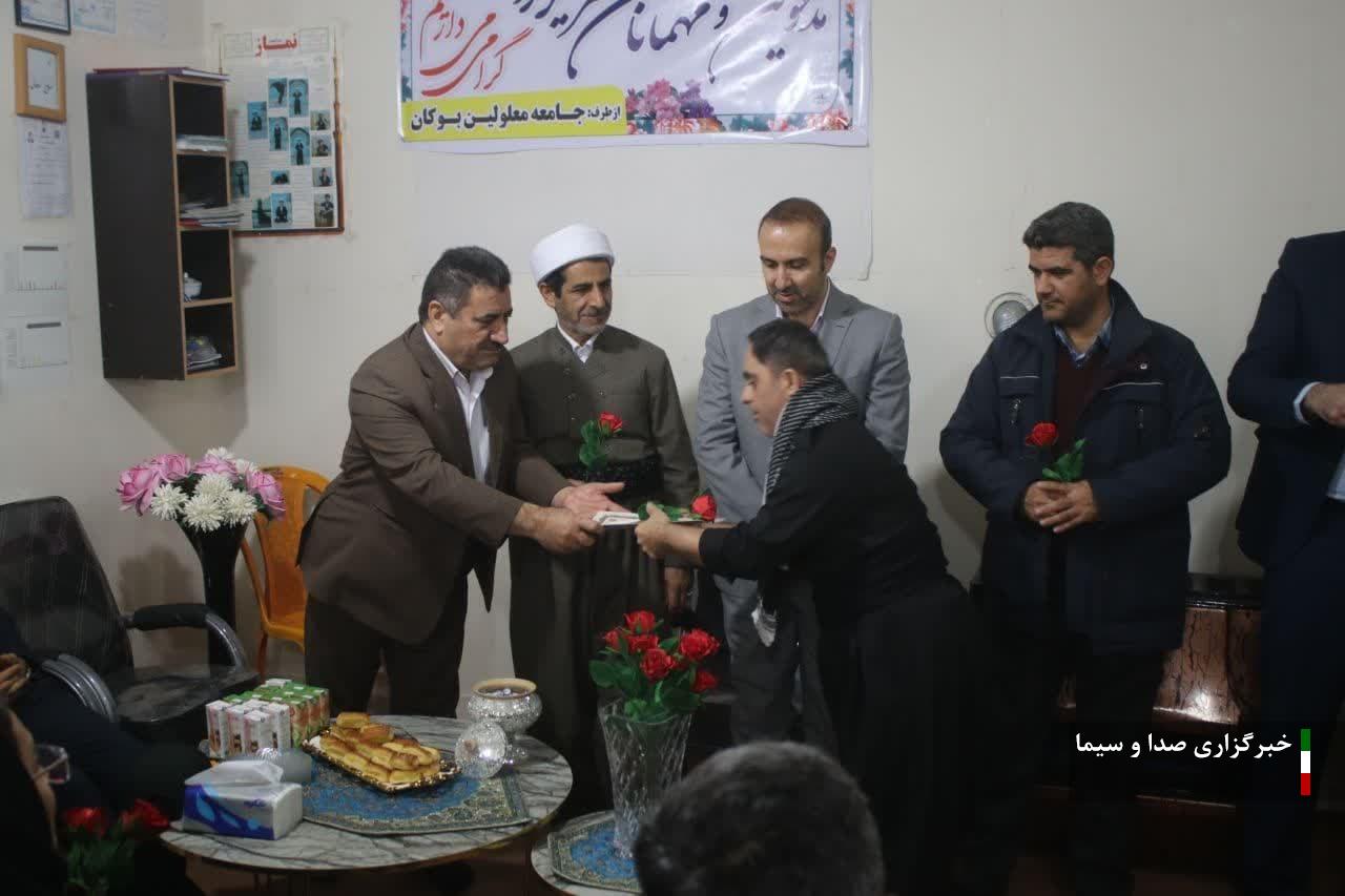 به گزارش خبرگزاری صداوسیمای استان آذربایجان غربی، به مناسبت گرامیداشت روز معلولین، فرماندار شهرستان بوکان با همراهی ماموستا احمدی (امام جمعه) رئیس شورای شهر رئیس بهزیستی، مدیر و معاون آموزش و پرورش، جانشین انتظامی با جامعه معلولین شهرستان دیدار و برای حل مسائل و مشکلات این حوزه با مدد جویان گفتگو کردند.